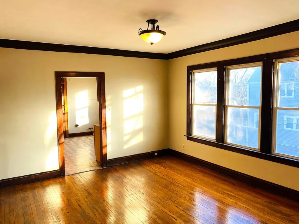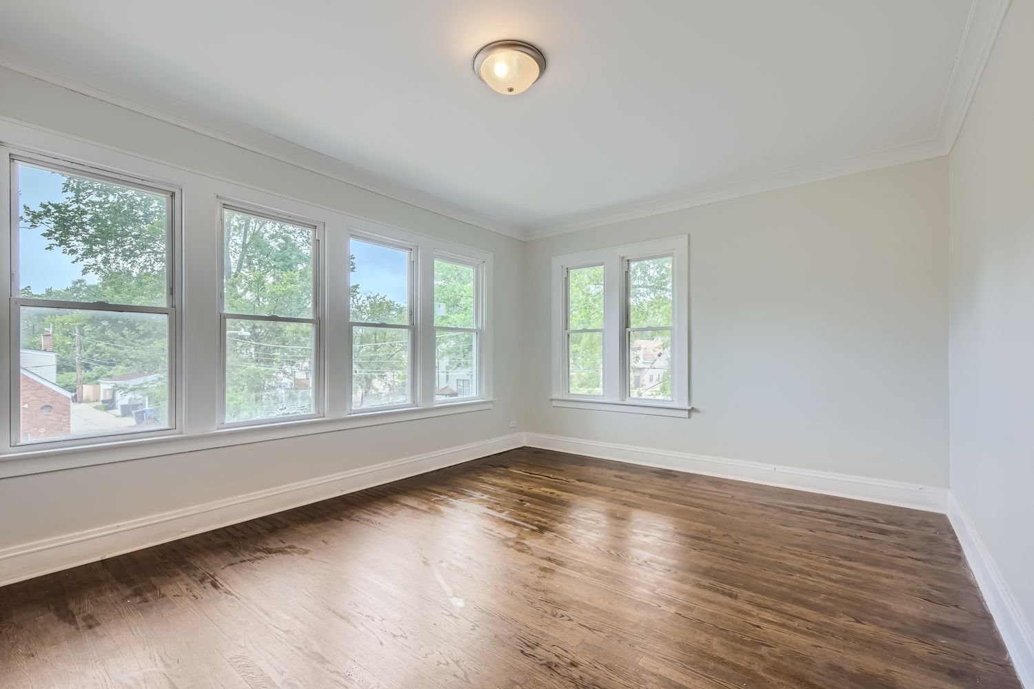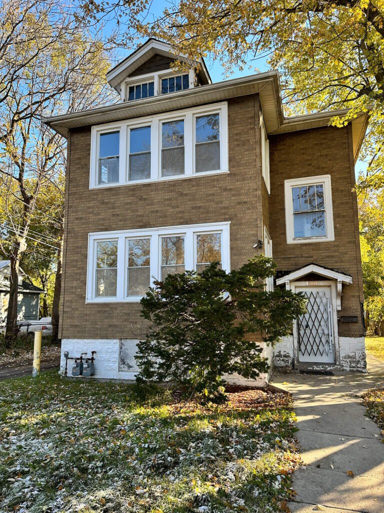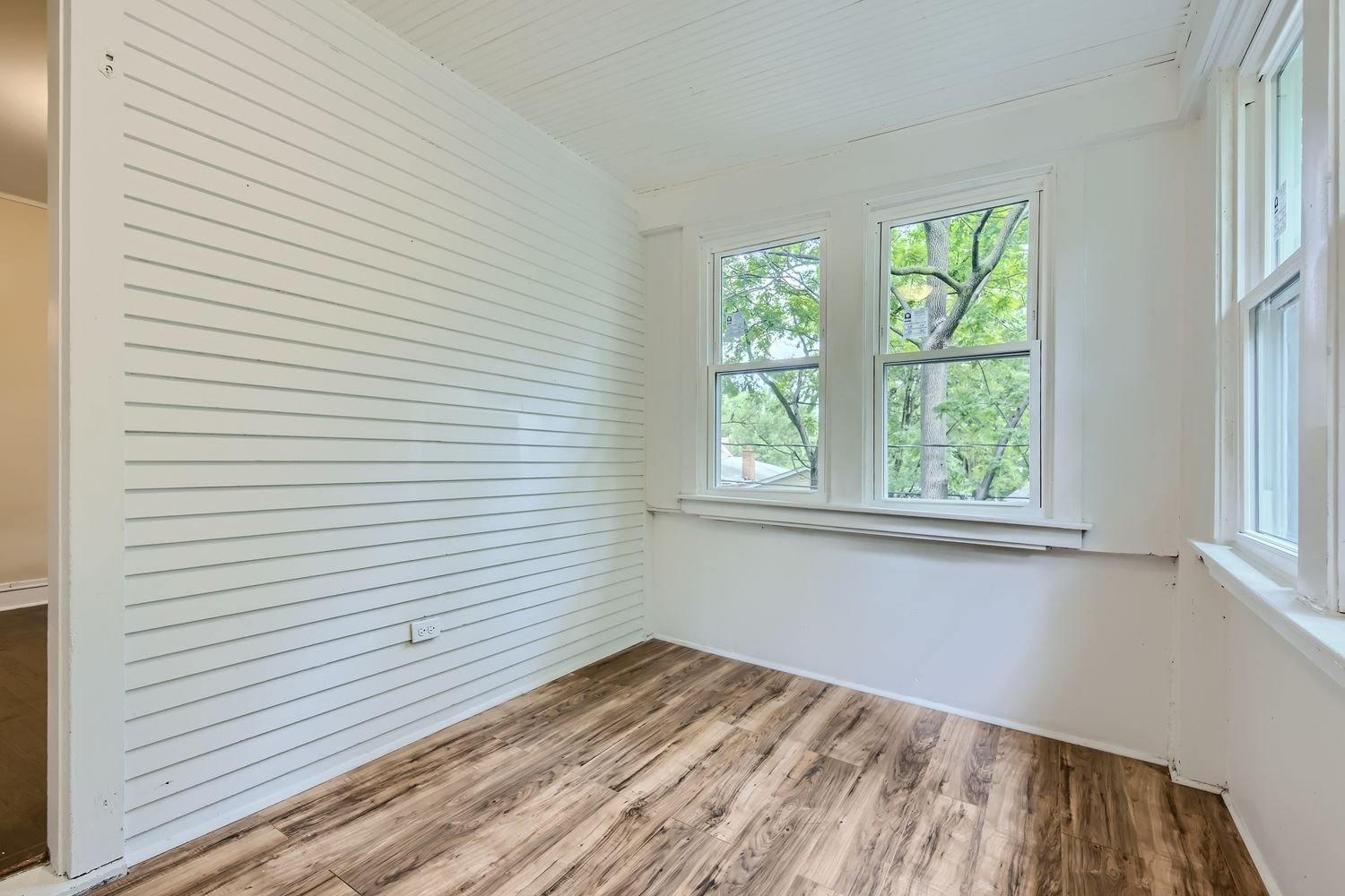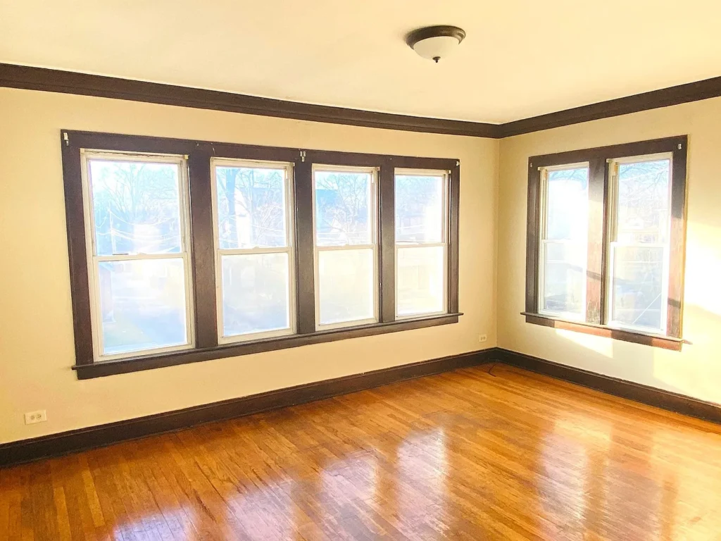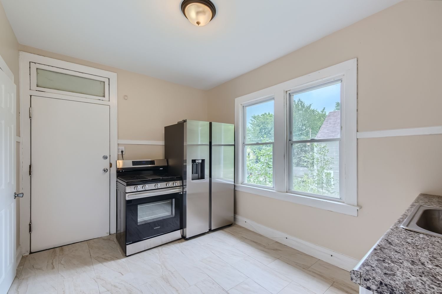 Gut unit, plaster walls, new bathroom plumbing, new windows, new siding and gutters, floring, and trim installation.