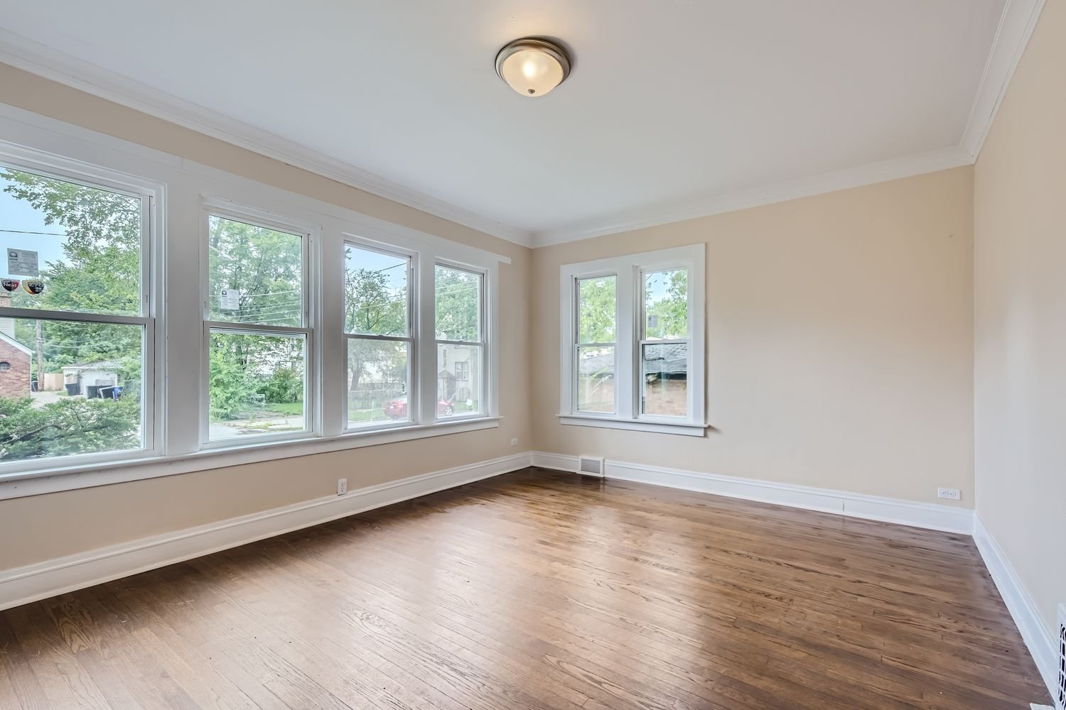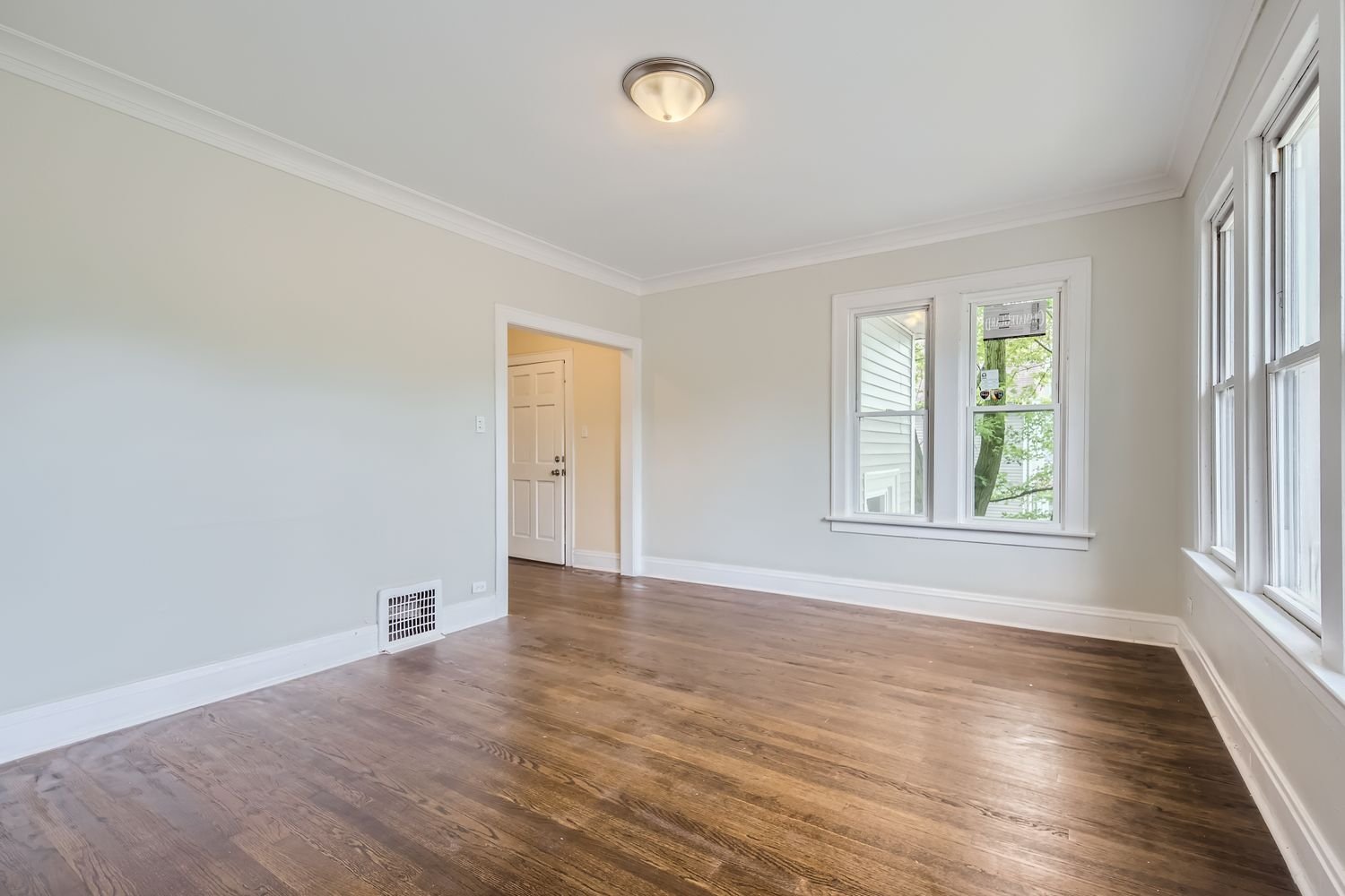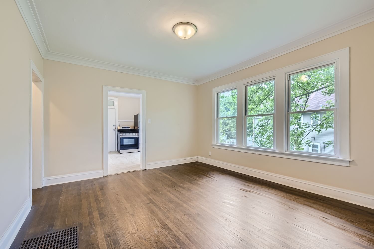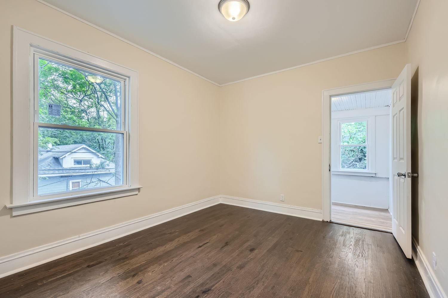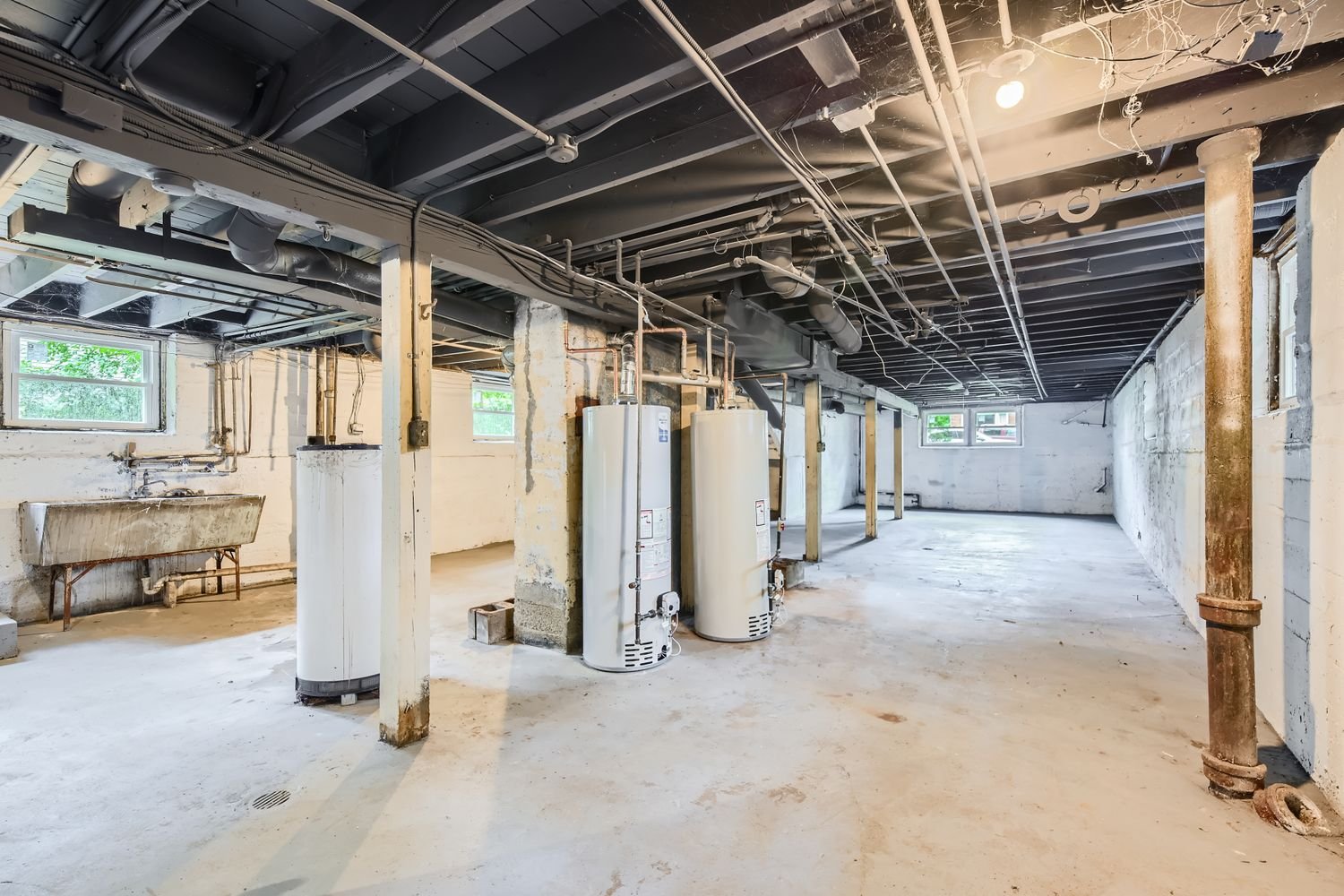 Gut unit, plaster walls, new bathroom plumbing, new windows, new siding and gutters, floring, and trim installation.
