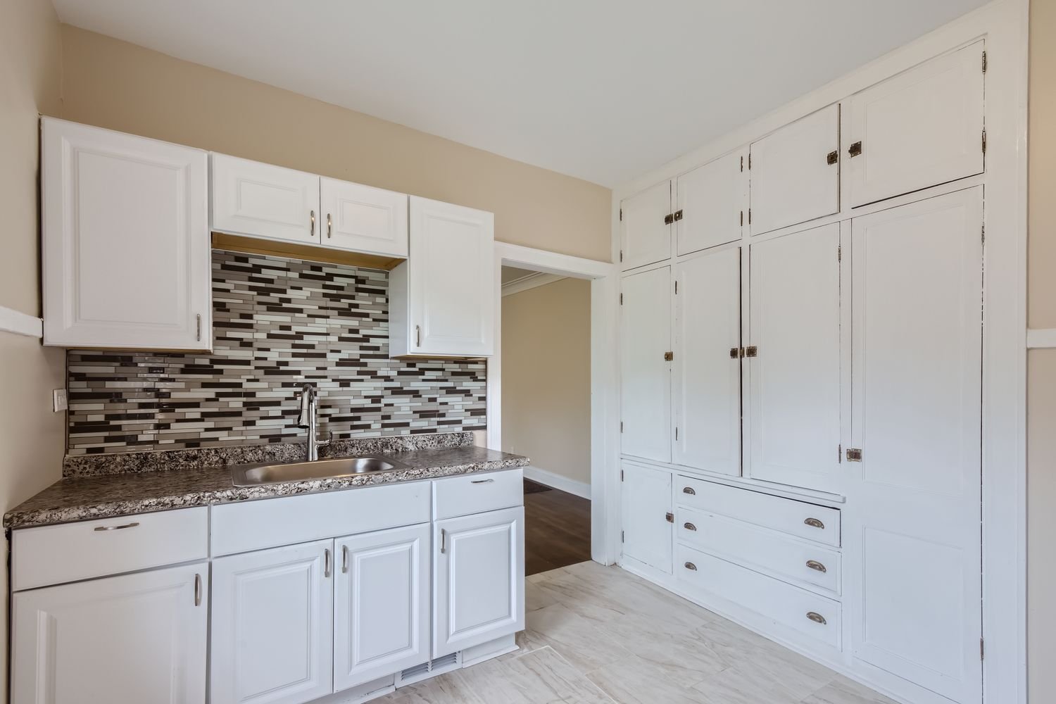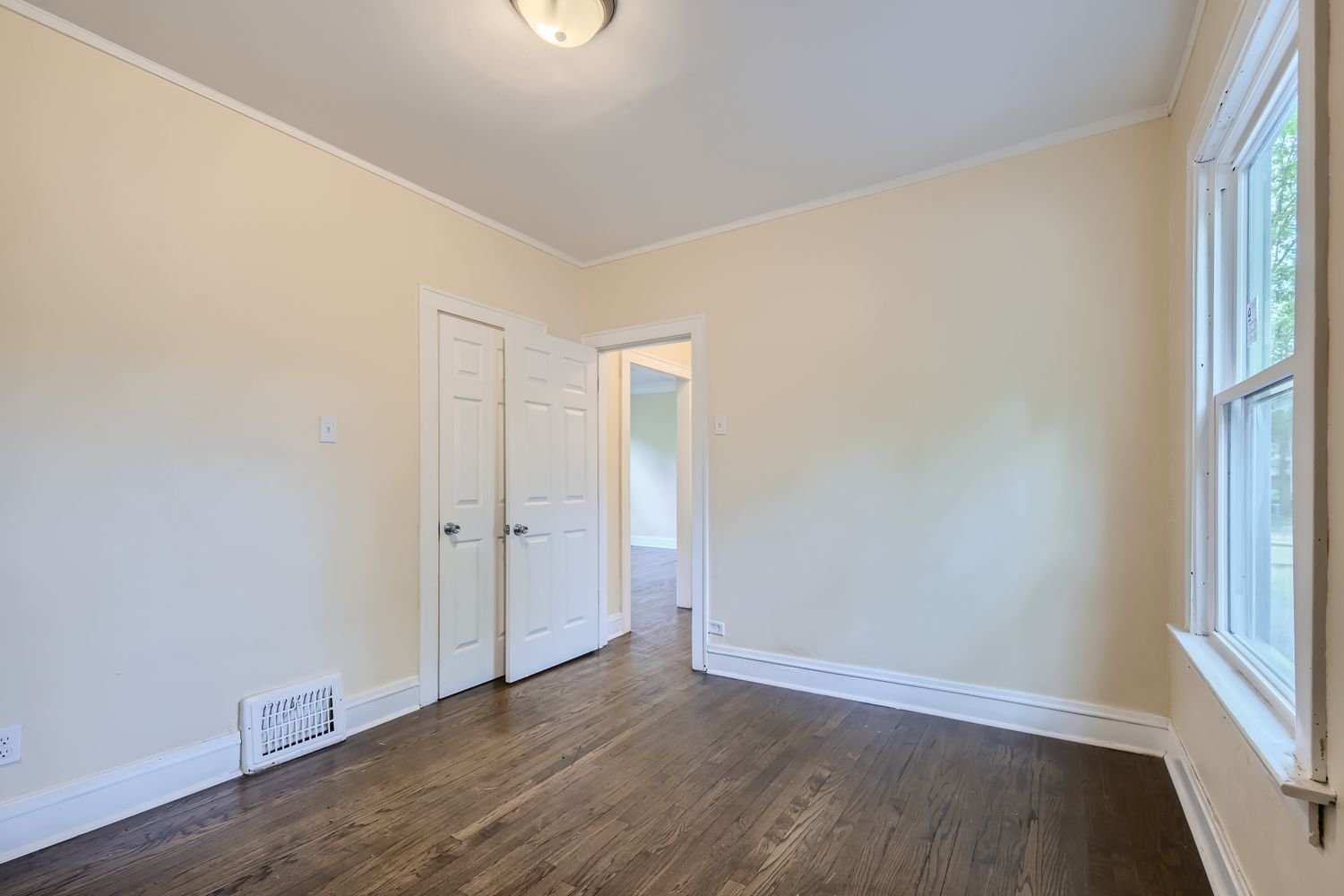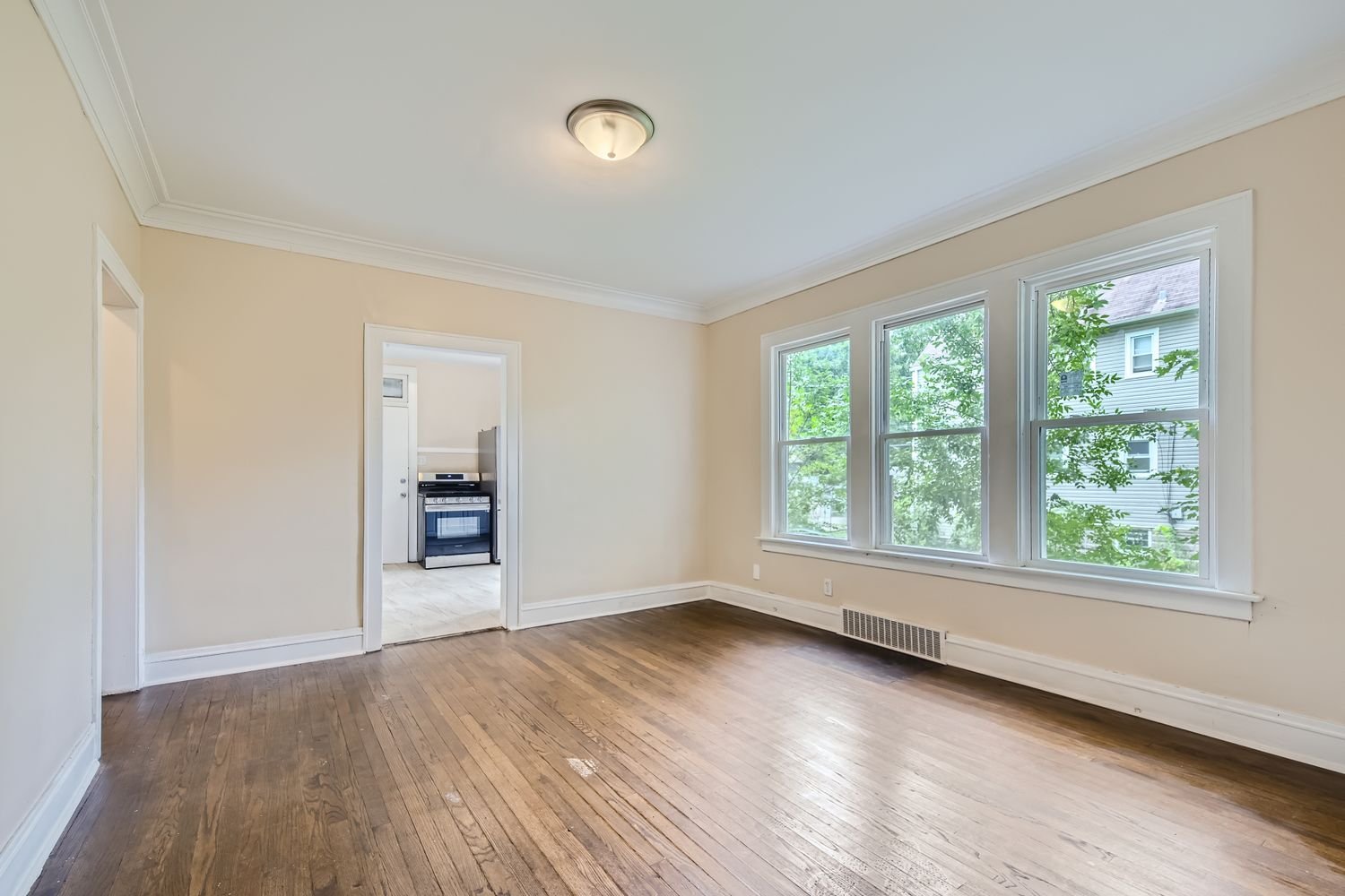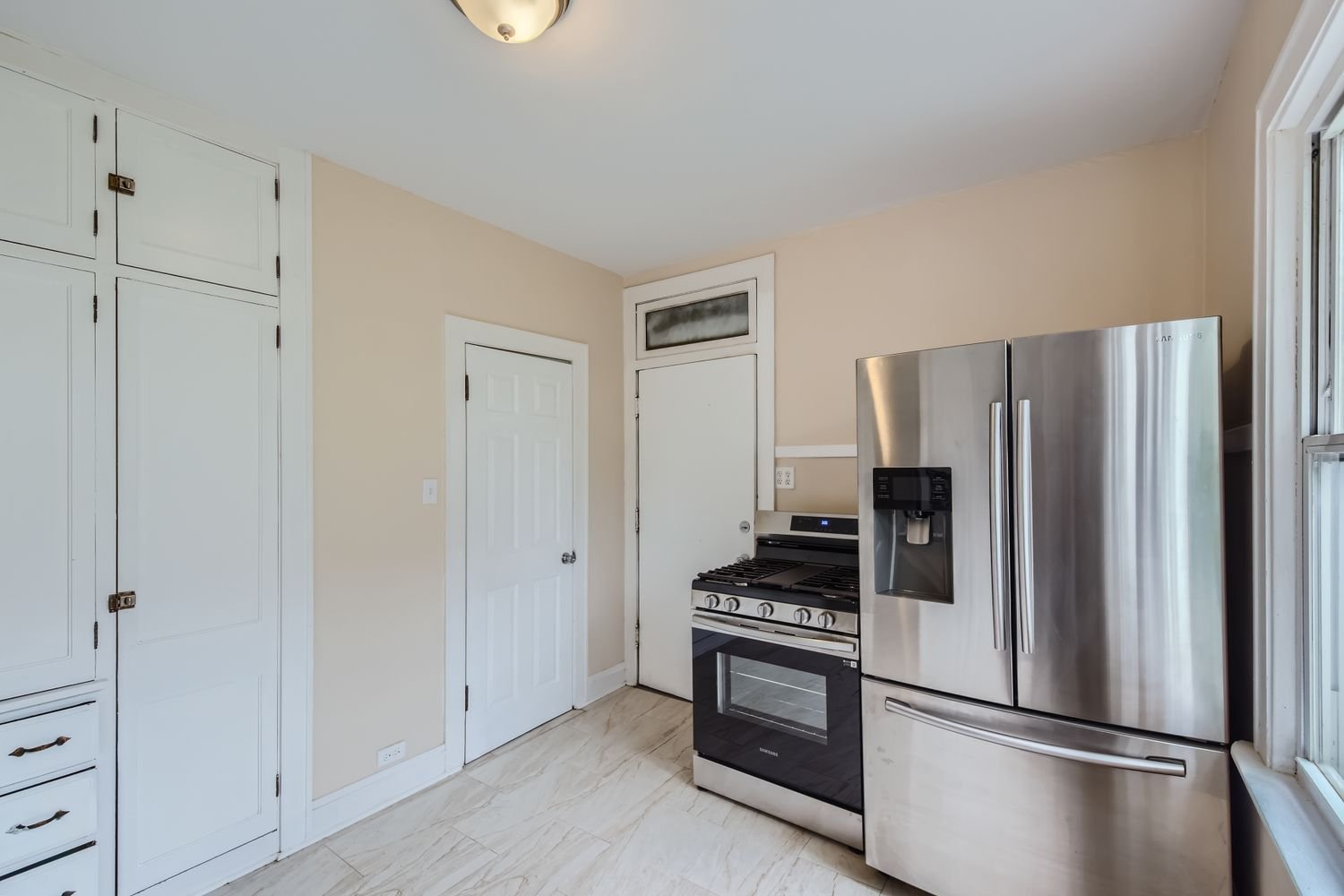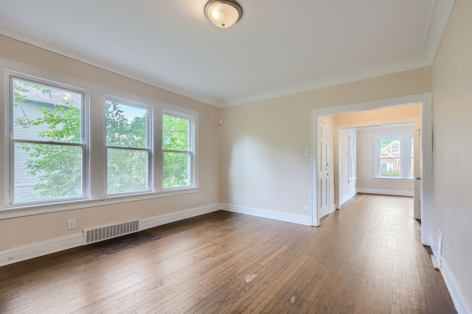 Gut unit, plaster walls, new bathroom plumbing, new windows, new siding and gutters, floring, and trim installation.
